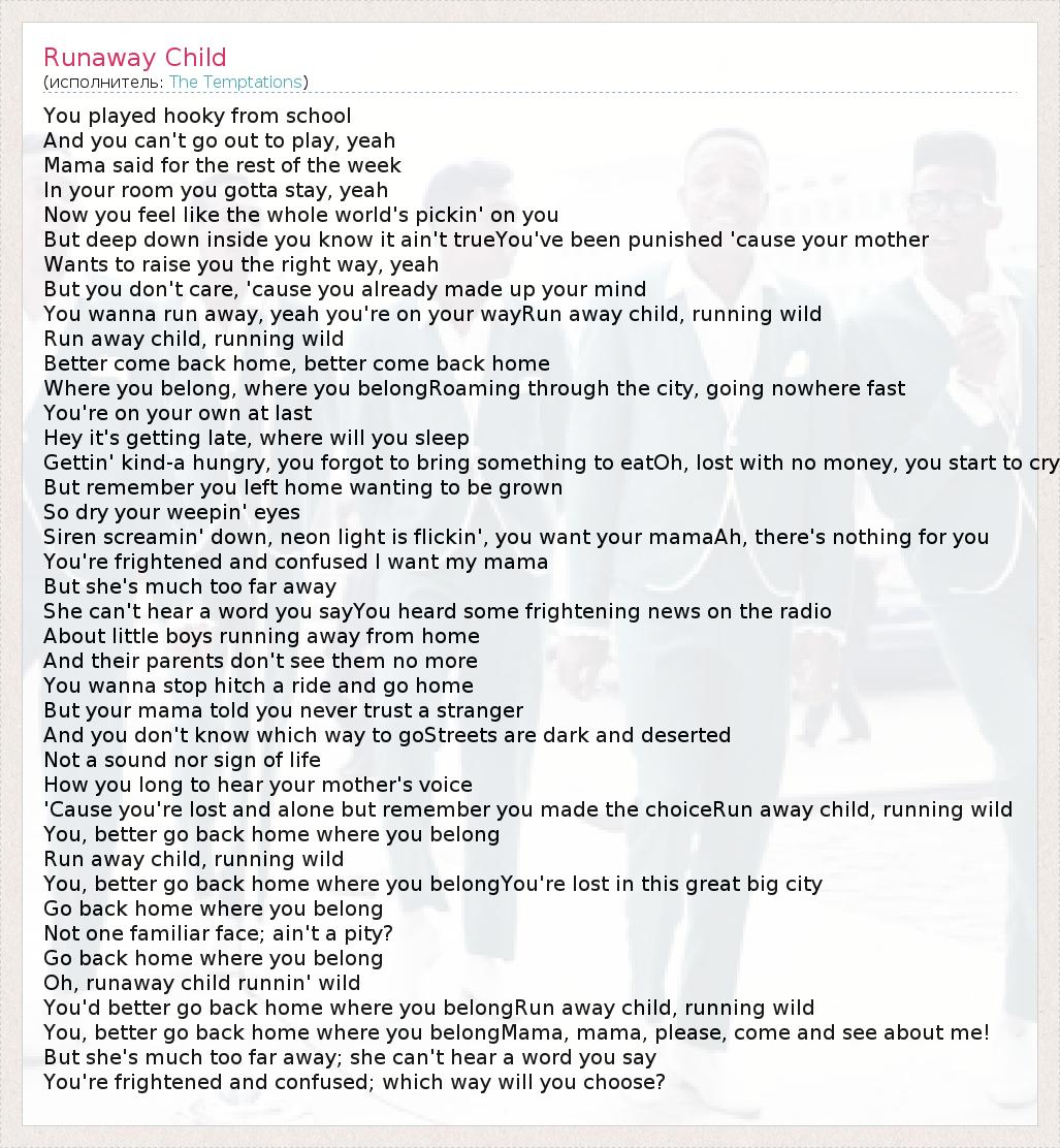 А как ты думаешь, о чем песня "Runaway Child" ?