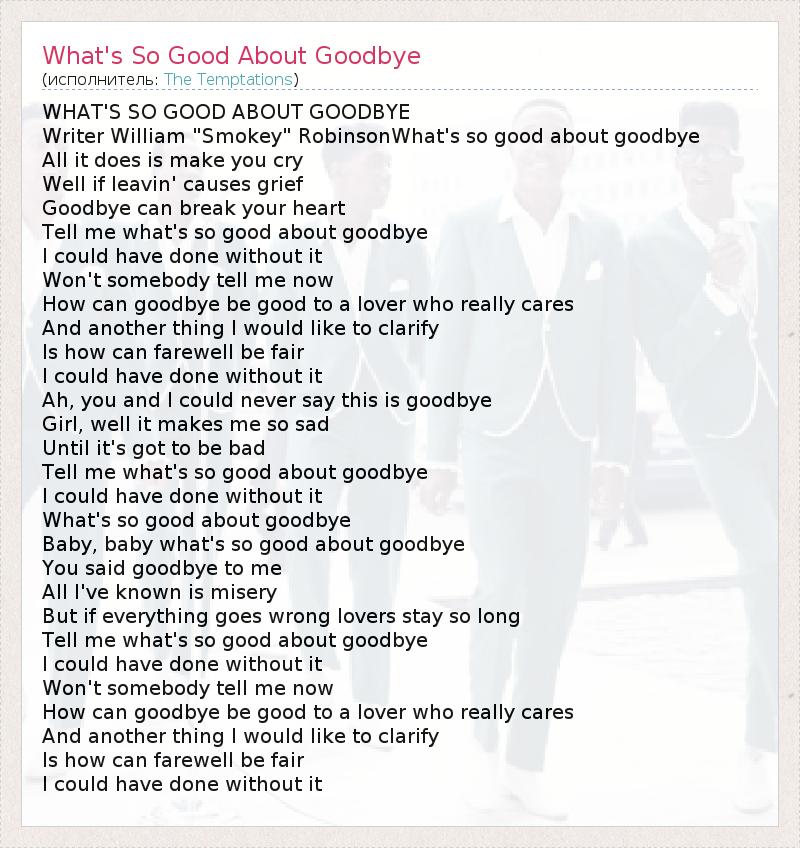 ГлавнаяИсполнителиThe TemptationsWhat's So Good About Goodbye