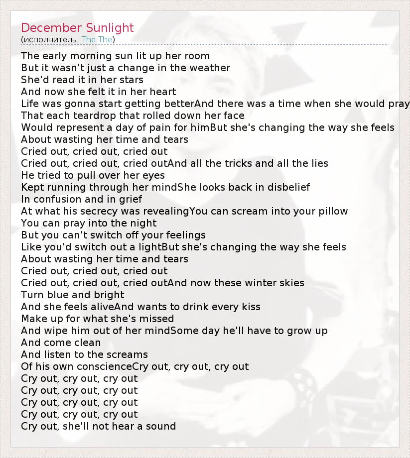 А как ты думаешь, о чем песня "December Sunlight" ?