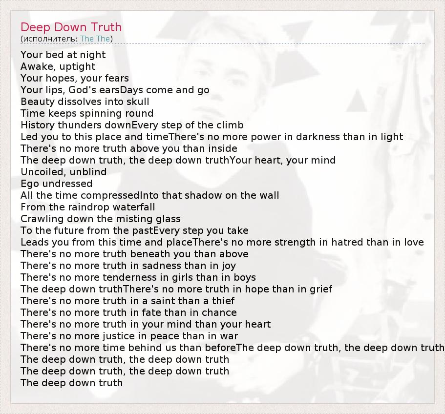 А как ты думаешь, о чем песня "Deep Down Truth" ?