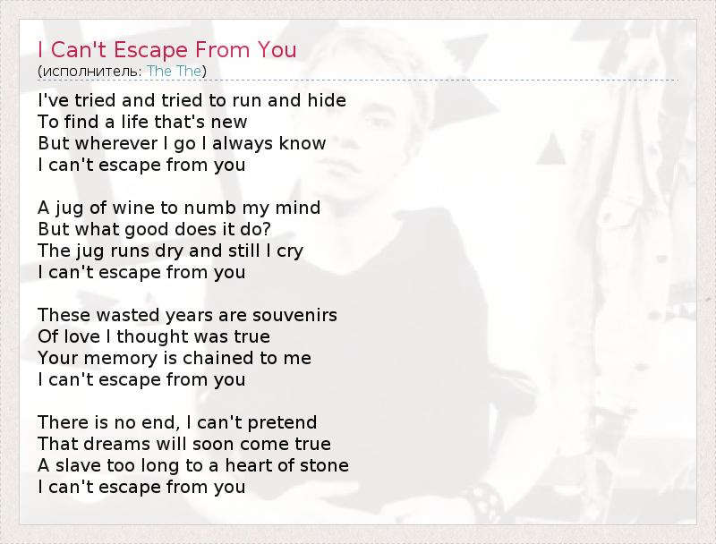 А как ты думаешь, о чем песня "I Can't Escape From You" ?