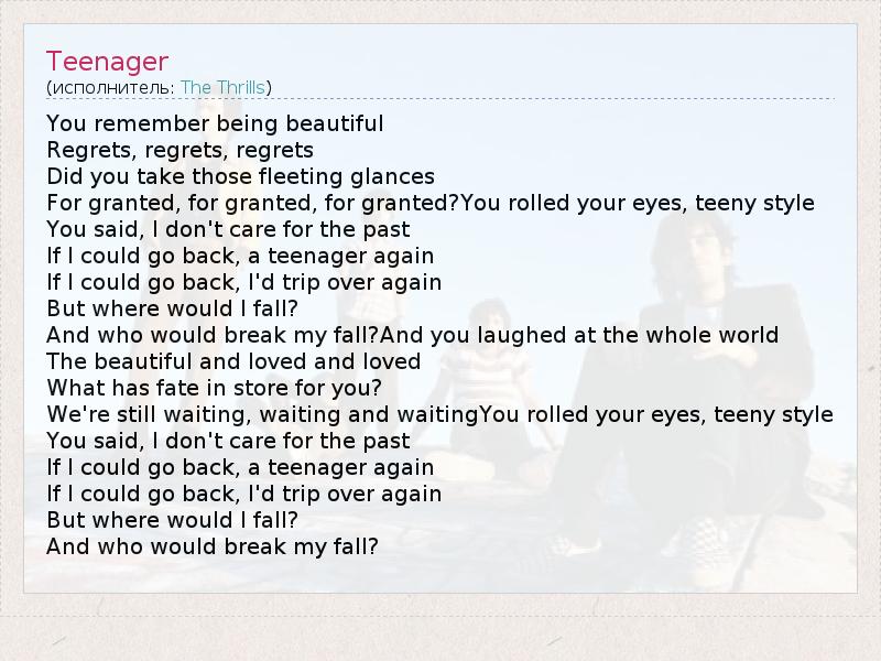 For granted, for granted, for granted?You rolled your eyes, teeny style