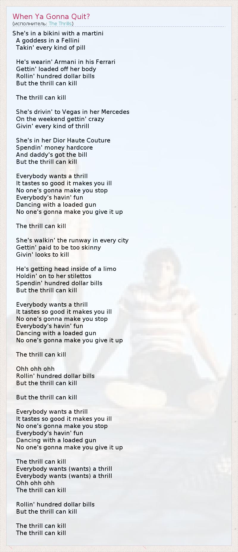 А как ты думаешь, о чем песня "When Ya Gonna Quit?" ?