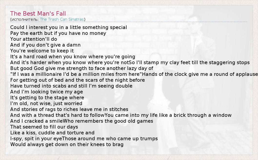 А как ты думаешь, о чем песня "The Best Man's Fall" ?