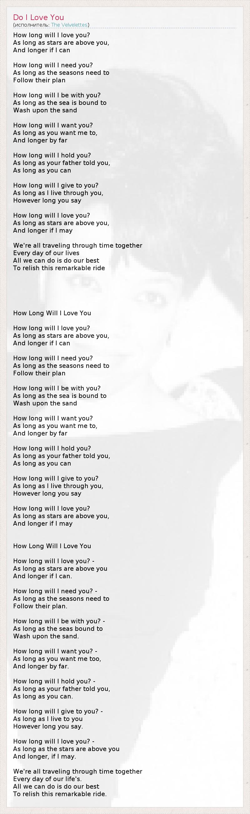 How Long Will I Love You