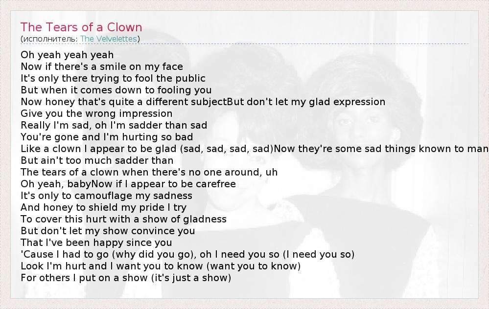 А как ты думаешь, о чем песня "The Tears of a Clown" ?