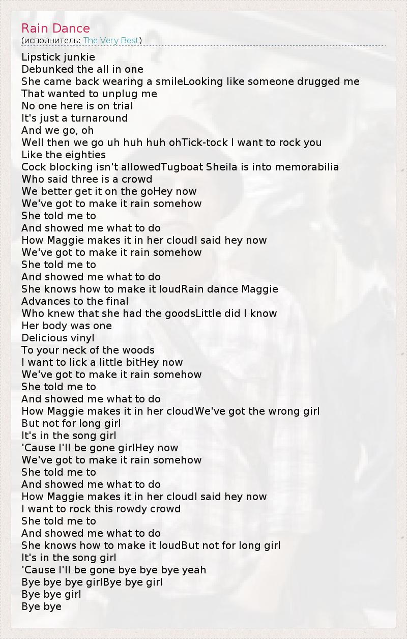 А как ты думаешь, о чем песня "Rain Dance" ?
