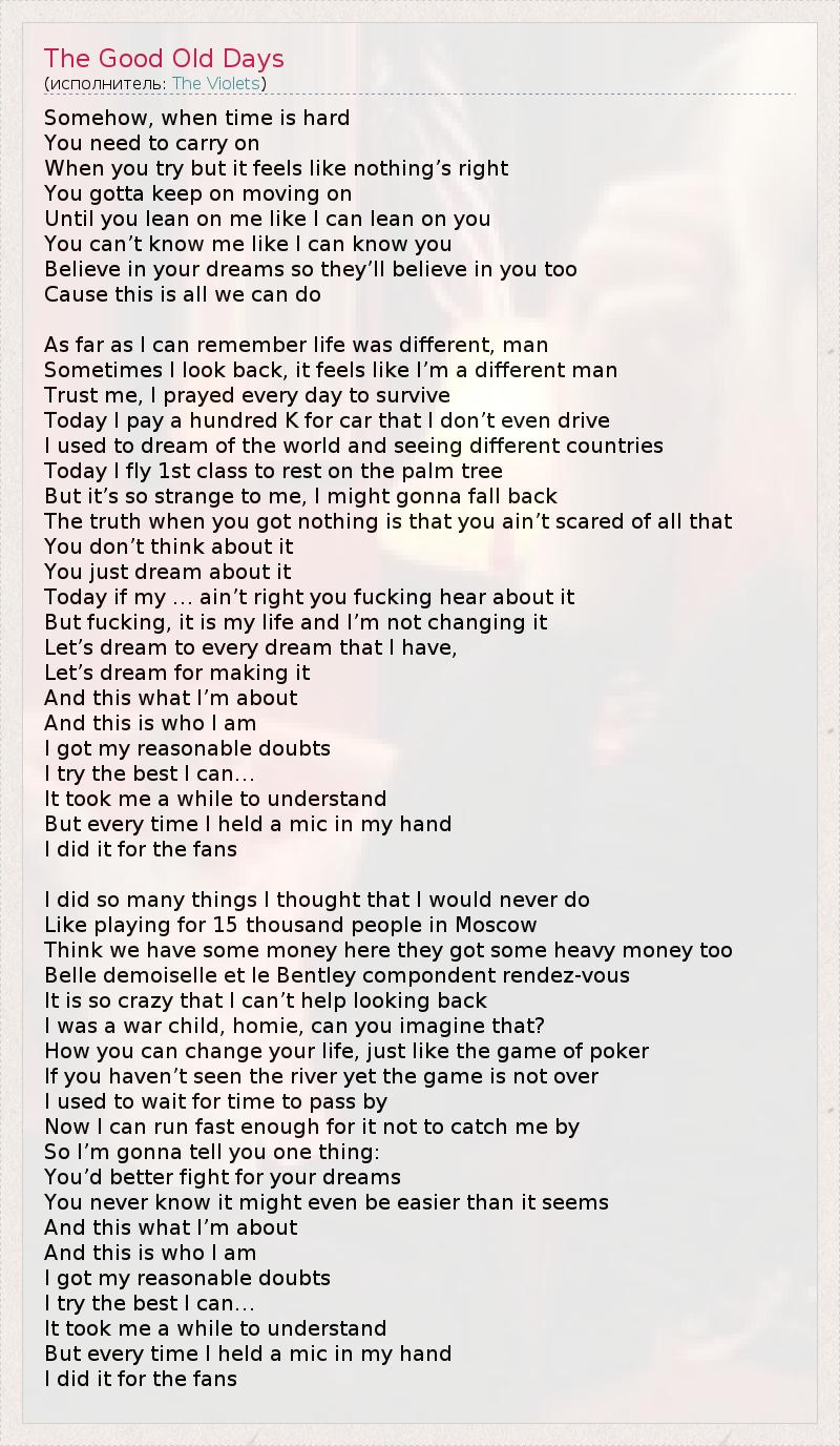 А как ты думаешь, о чем песня "The Good Old Days" ?