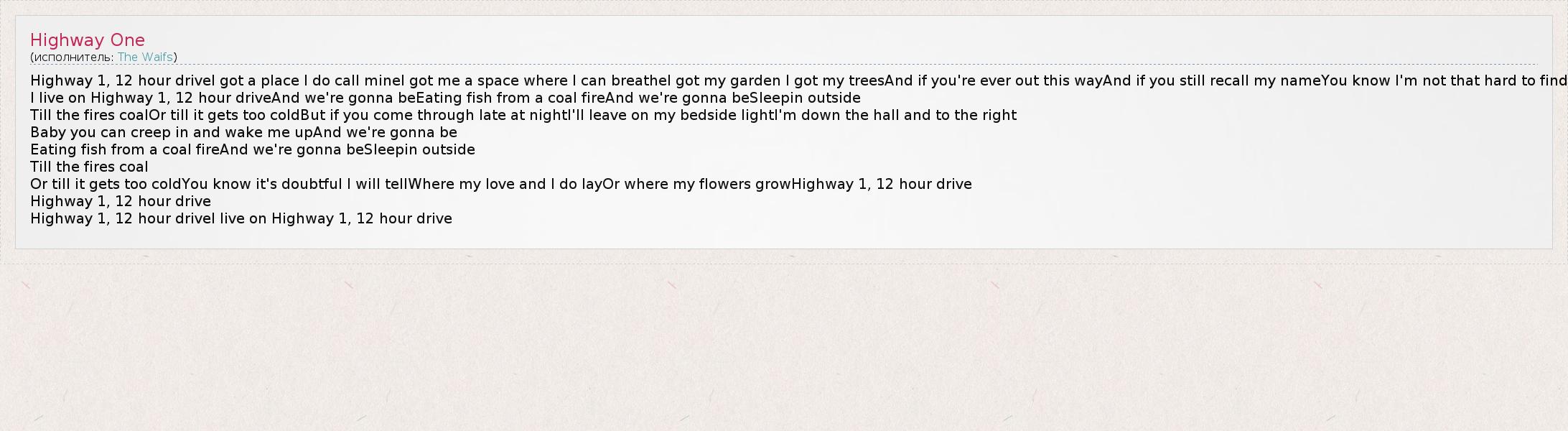 А как ты думаешь, о чем песня "Highway One" ?