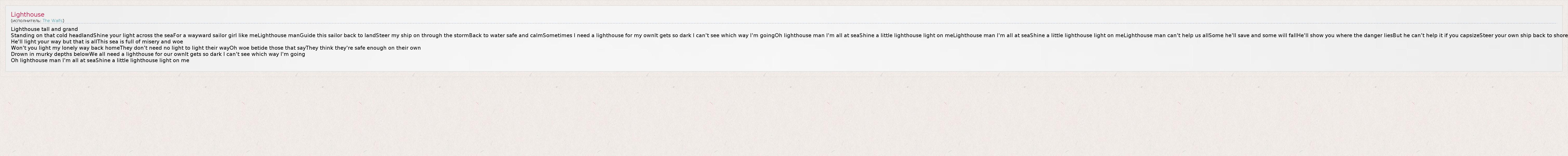 А как ты думаешь, о чем песня "Lighthouse" ?