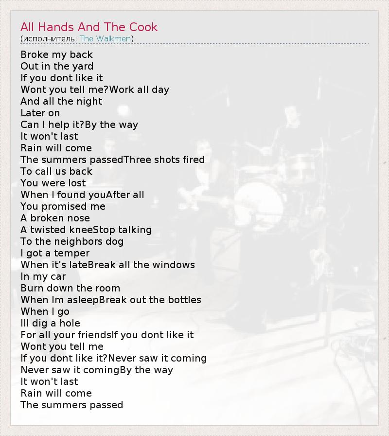 А как ты думаешь, о чем песня "All Hands And The Cook" ?