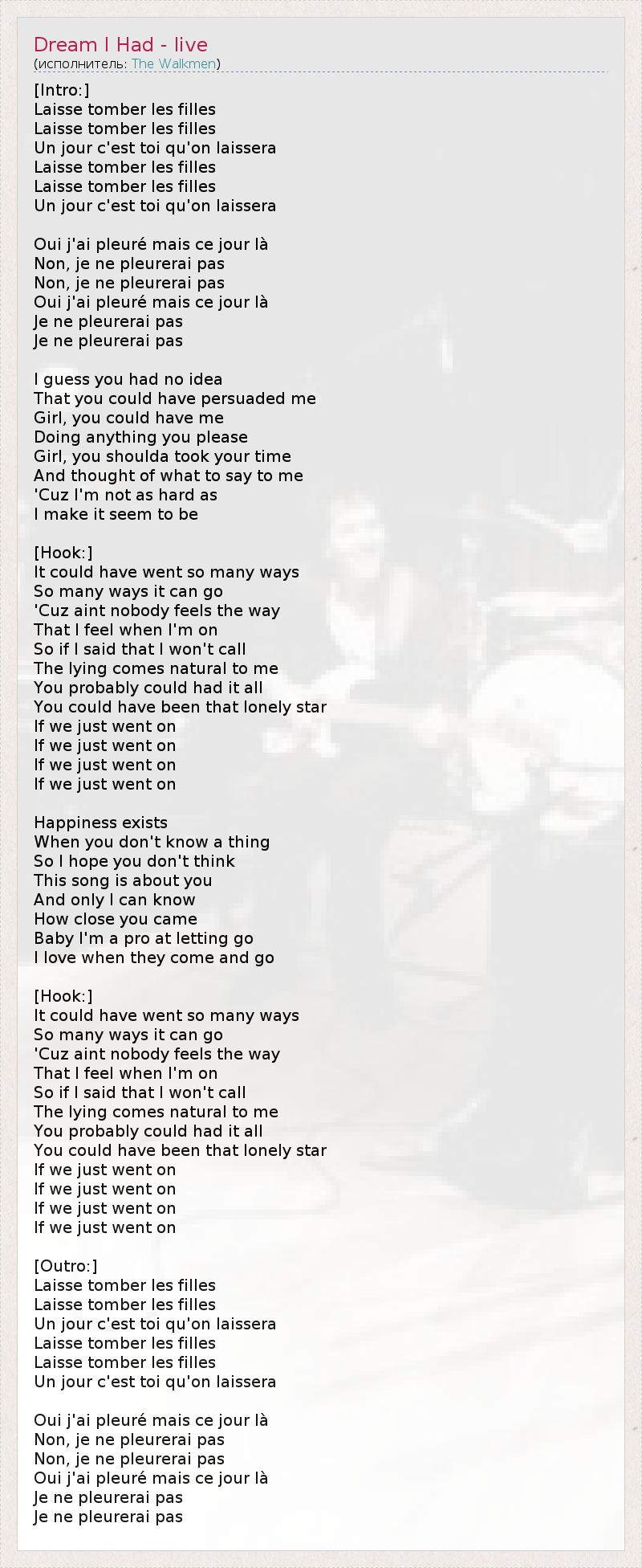 А как ты думаешь, о чем песня "Dream I Had - live" ?
