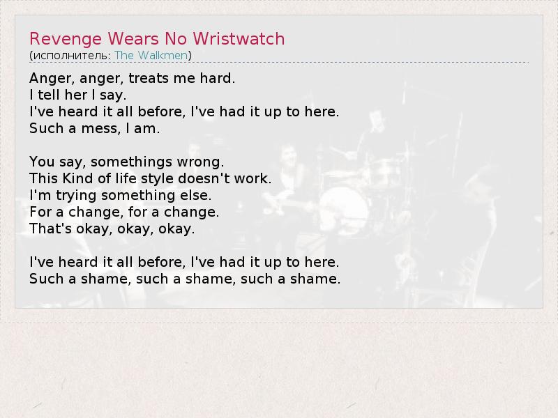 А как ты думаешь, о чем песня "Revenge Wears No Wristwatch" ?