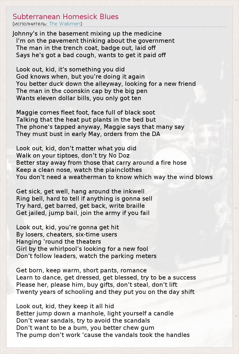 А как ты думаешь, о чем песня "Subterranean Homesick Blues" ?