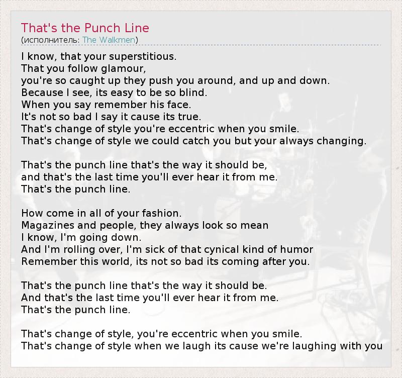 А как ты думаешь, о чем песня "That's the Punch Line" ?