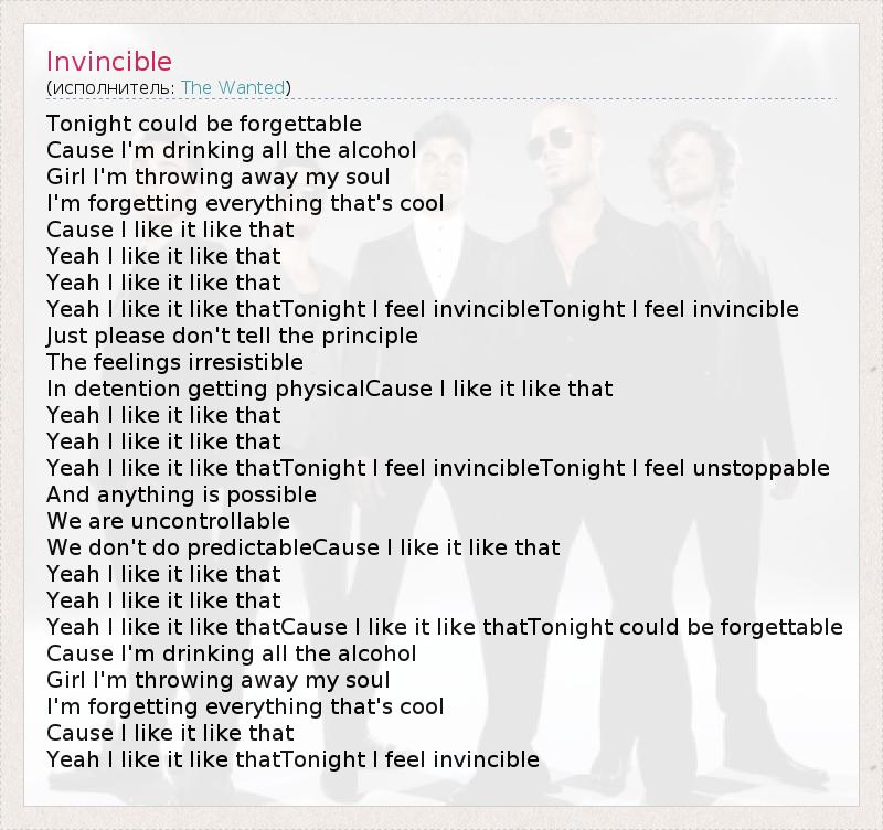 Yeah I like it like thatTonight I feel invincibleTonight I feel invincible