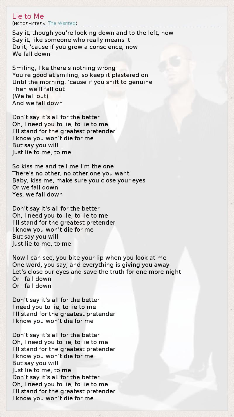 Oh, I need you to lie, to lie to me