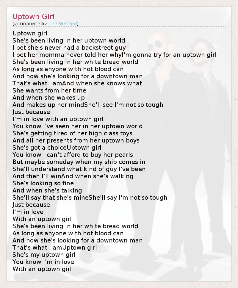 А как ты думаешь, о чем песня "Uptown Girl" ?