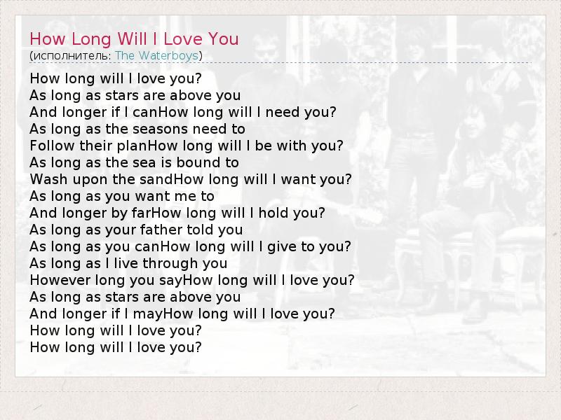 А как ты думаешь, о чем песня "How Long Will I Love You" ?