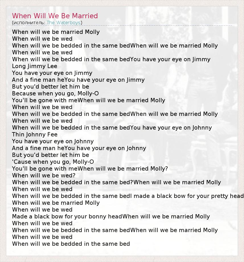 А как ты думаешь, о чем песня "When Will We Be Married" ?