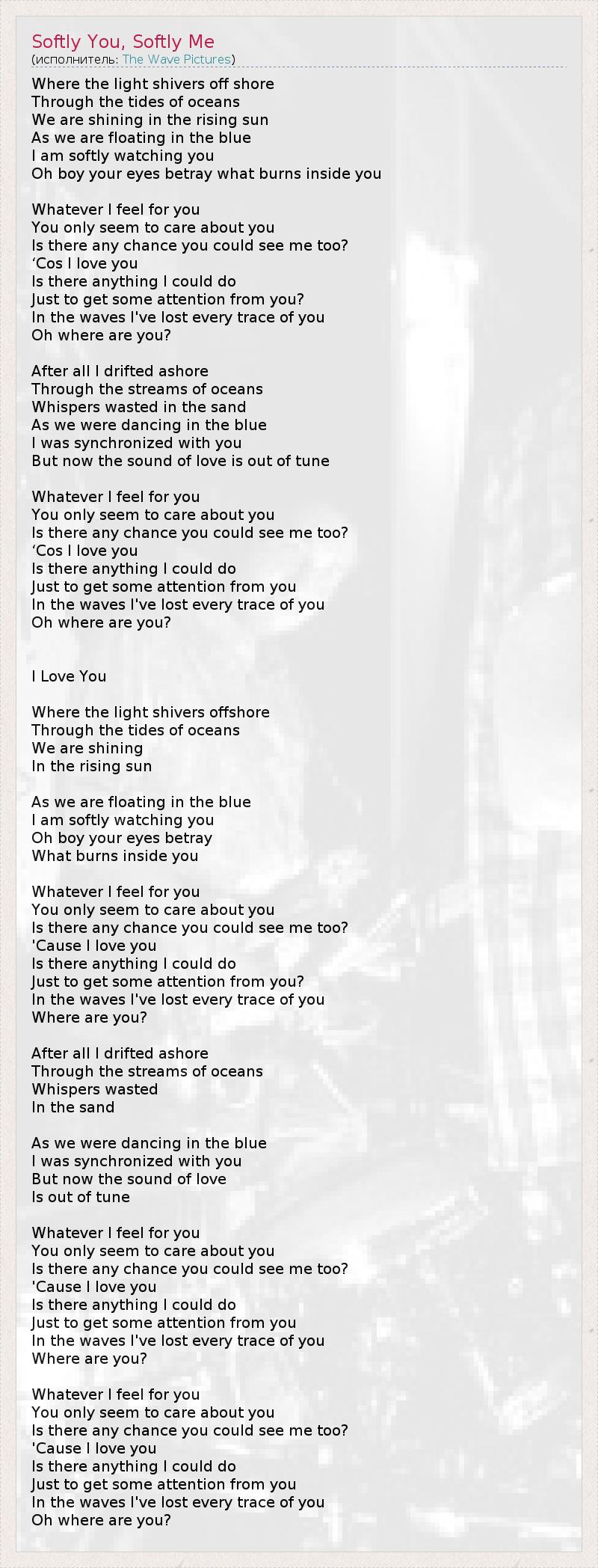 А как ты думаешь, о чем песня "Softly You, Softly Me" ?