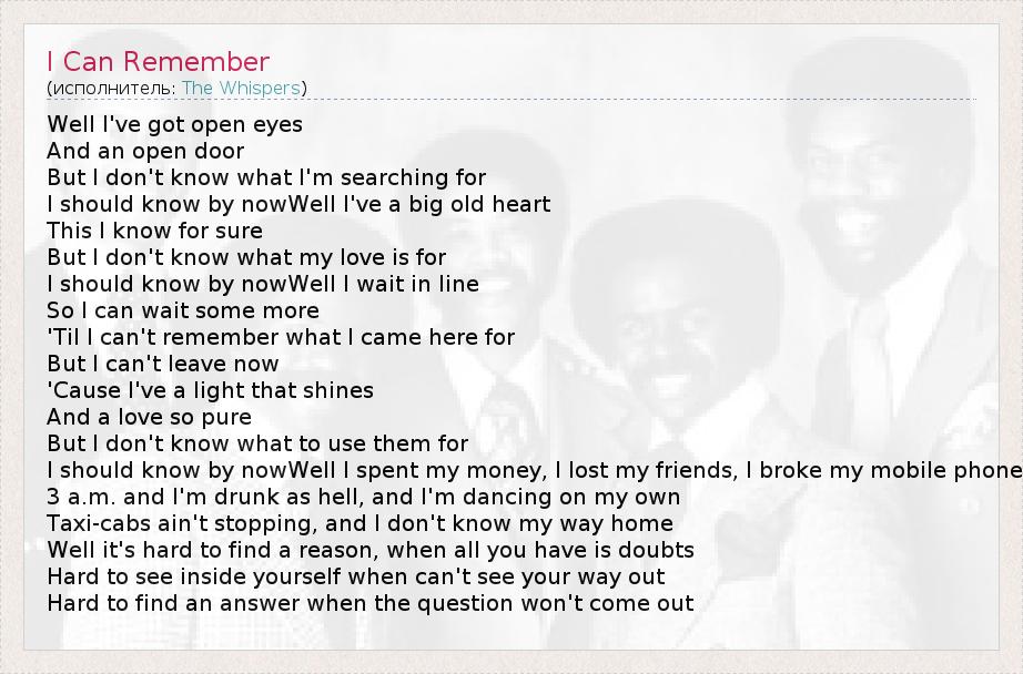 А как ты думаешь, о чем песня "I Can Remember" ?