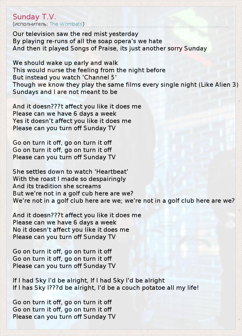 А как ты думаешь, о чем песня "Sunday T.V." ?