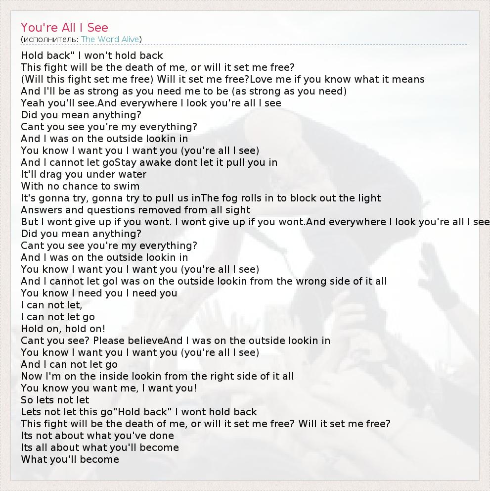 And I cannot let goI was on the outside lookin from the wrong side of it all