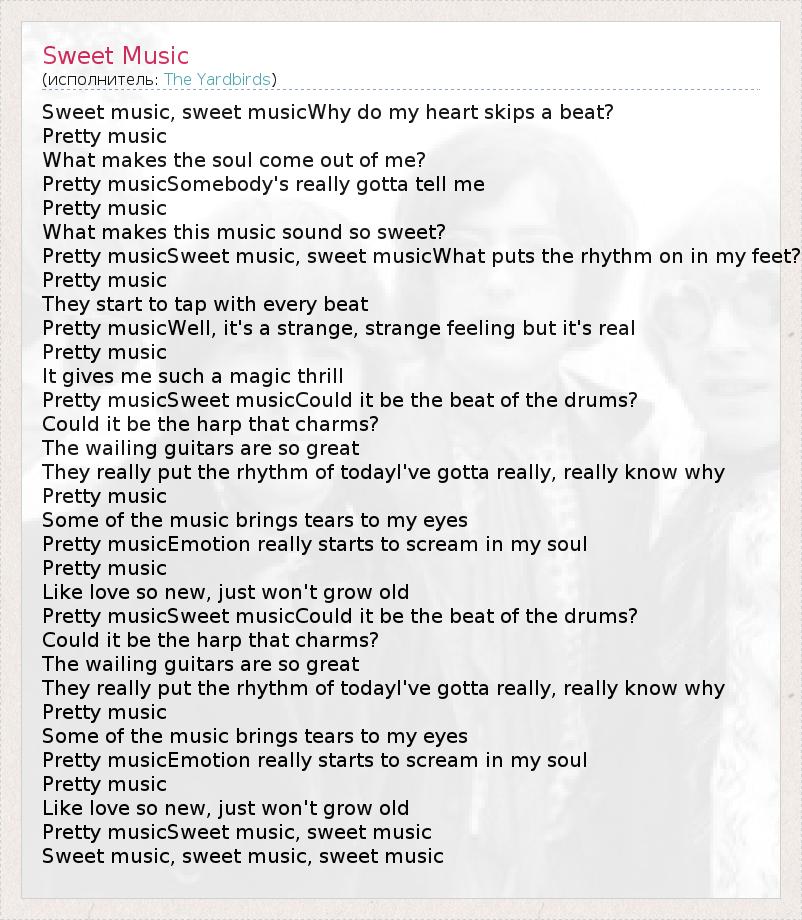 Sweet music, sweet musicWhy do my heart skips a beat?