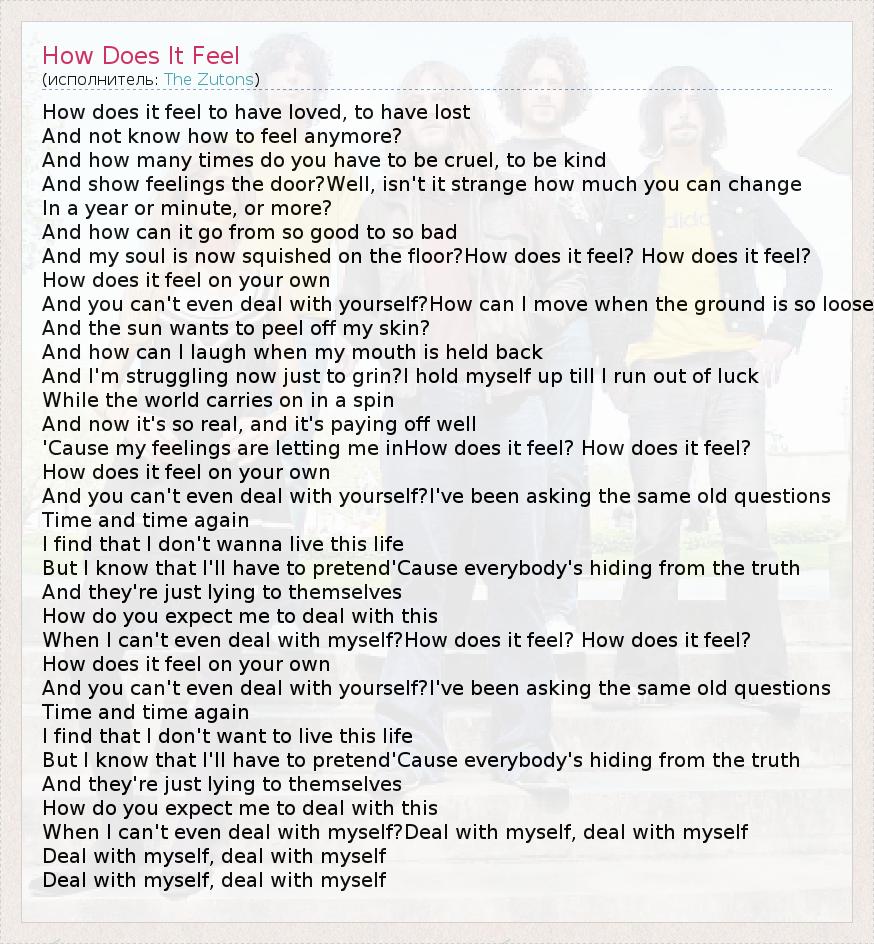 А как ты думаешь, о чем песня "How Does It Feel" ?