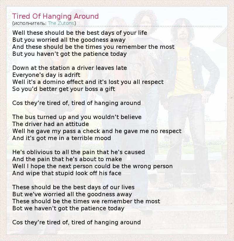 А как ты думаешь, о чем песня "Tired Of Hanging Around" ?
