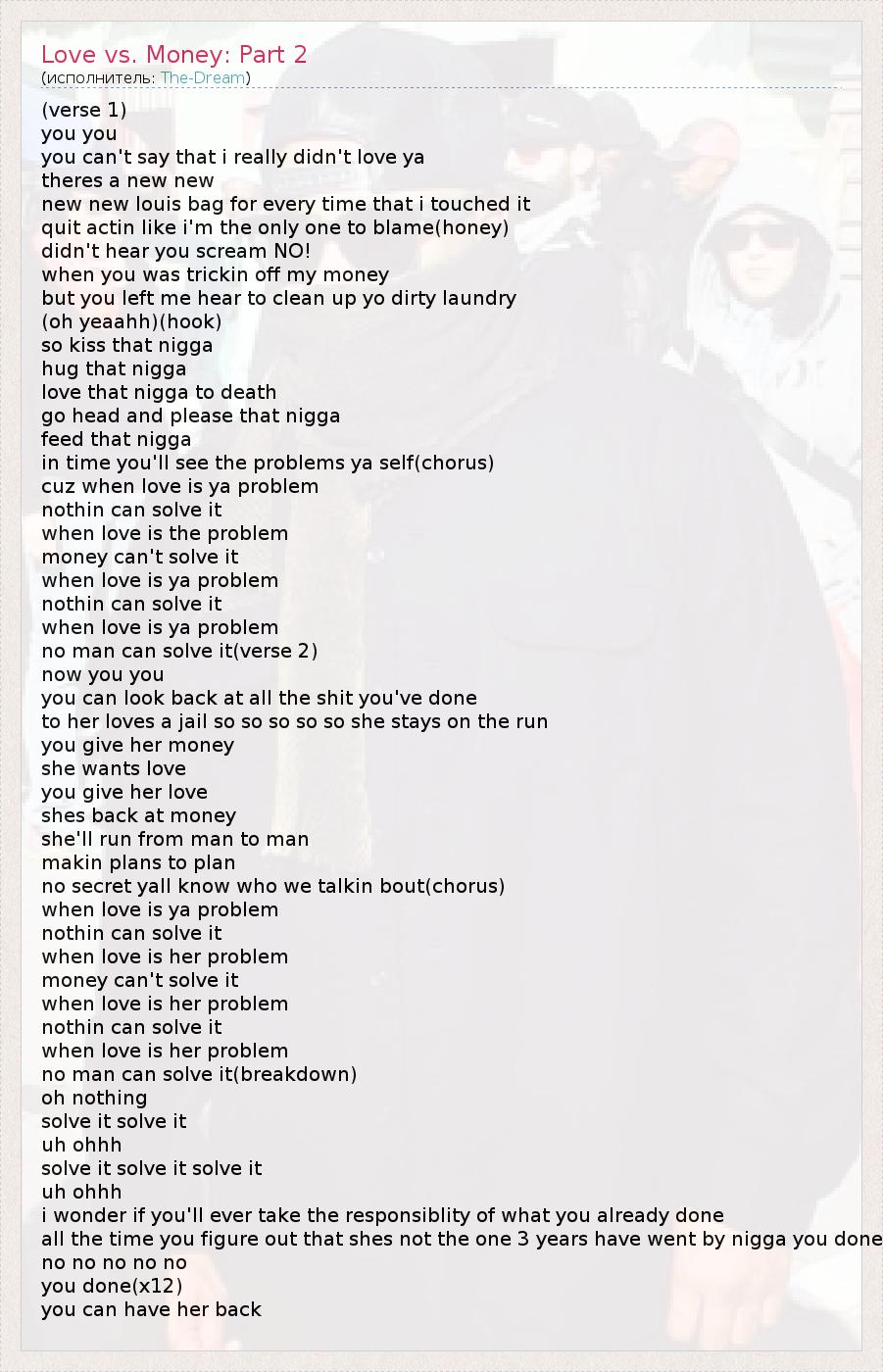 А как ты думаешь, о чем песня "Love vs. Money: Part 2" ?