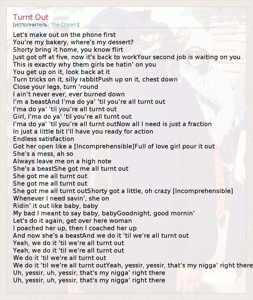 А как ты думаешь, о чем песня "Turnt Out" ?