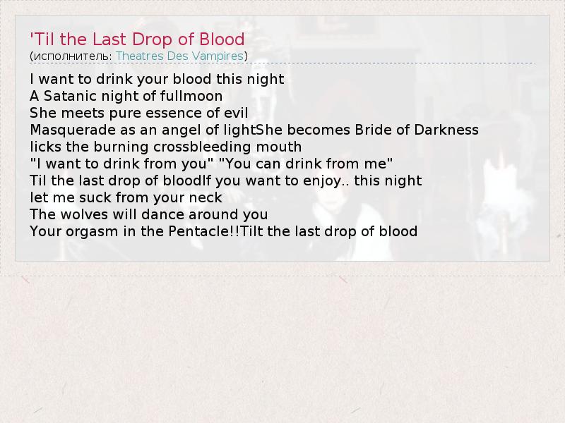 А как ты думаешь, о чем песня "'Til the Last Drop of Blood" ?