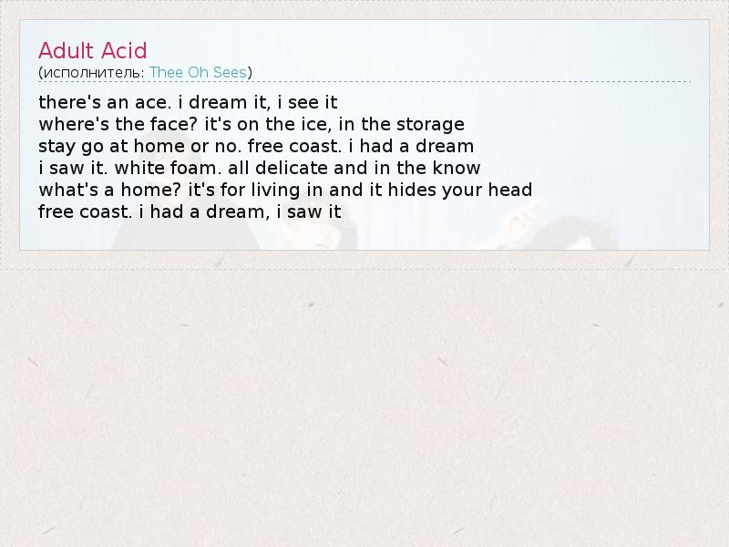 А как ты думаешь, о чем песня "Adult Acid" ?
