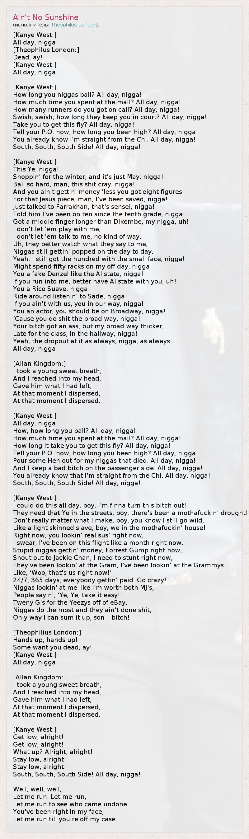 А как ты думаешь, о чем песня "Ain't No Sunshine" ?