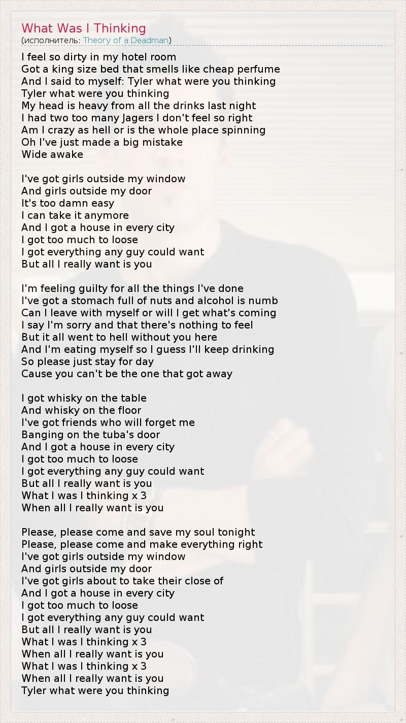 А как ты думаешь, о чем песня "What Was I Thinking" ?