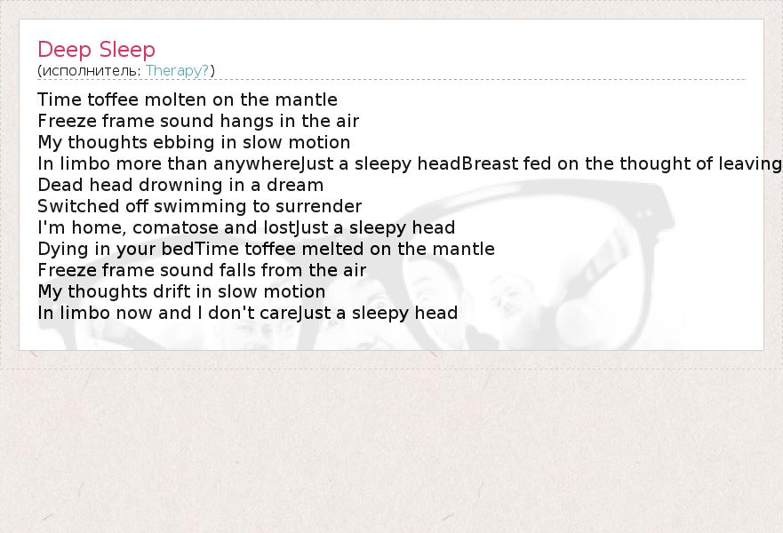 А как ты думаешь, о чем песня "Deep Sleep" ?