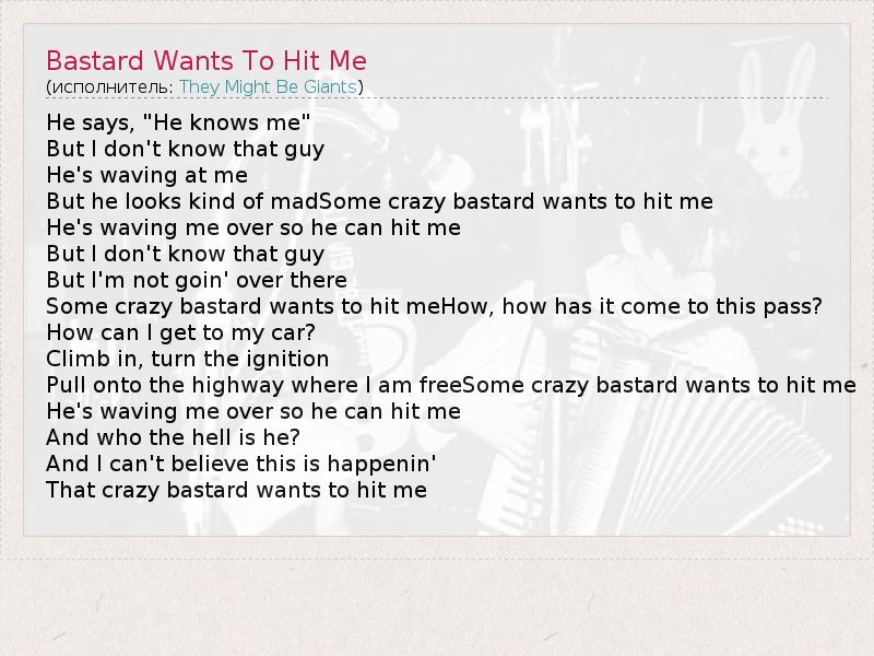 А как ты думаешь, о чем песня "Bastard Wants To Hit Me" ?
