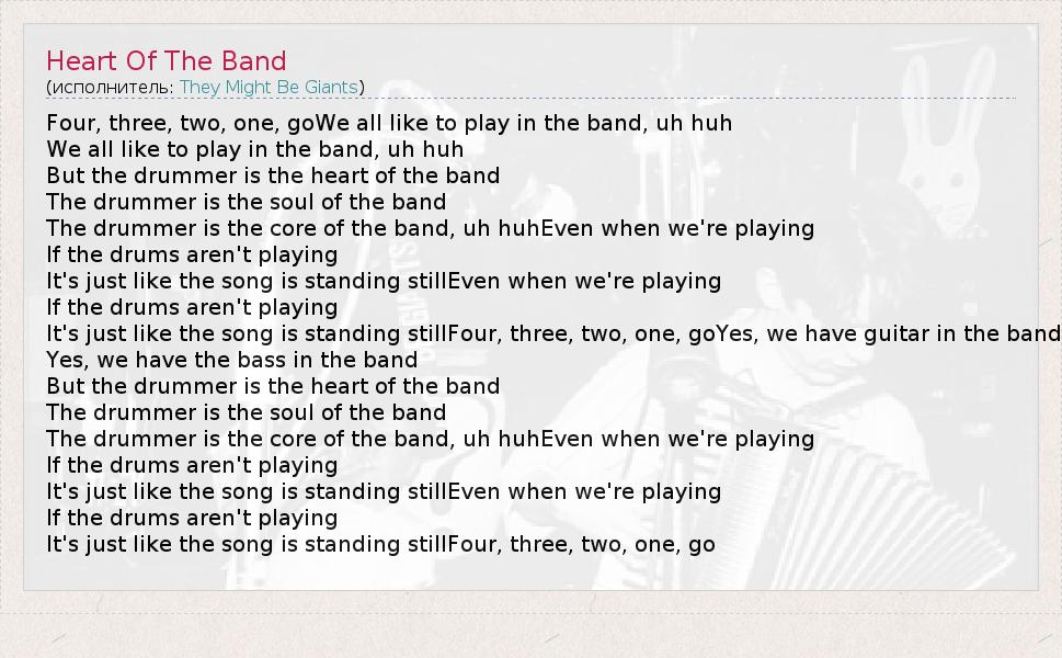 А как ты думаешь, о чем песня "Heart Of The Band" ?
