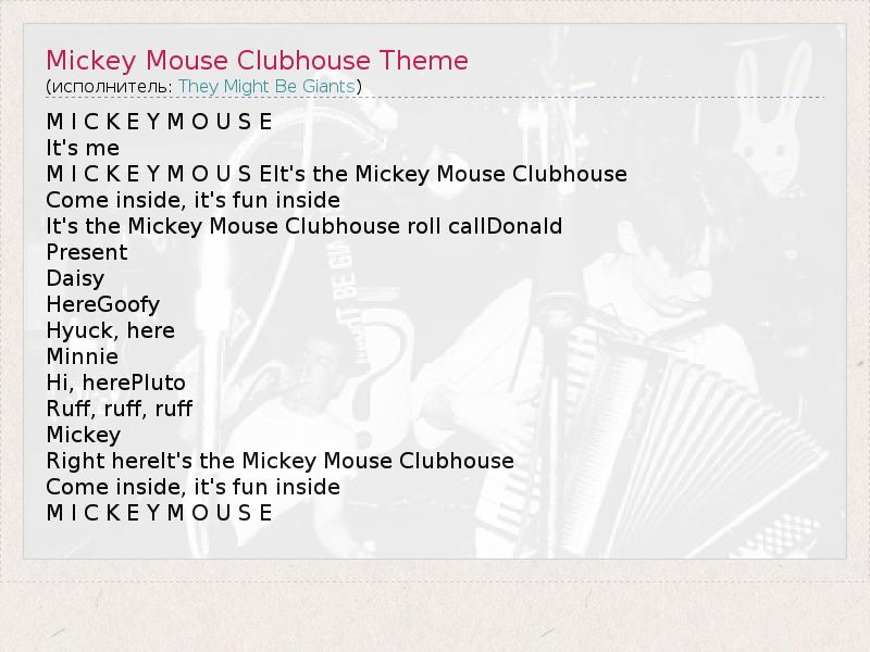 А как ты думаешь, о чем песня "Mickey Mouse Clubhouse Theme" ?