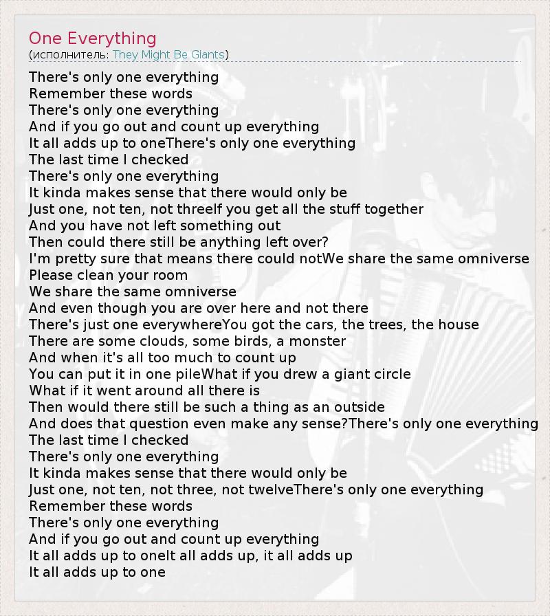 А как ты думаешь, о чем песня "One Everything" ?