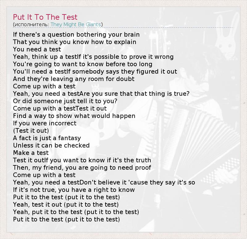 А как ты думаешь, о чем песня "Put It To The Test" ?