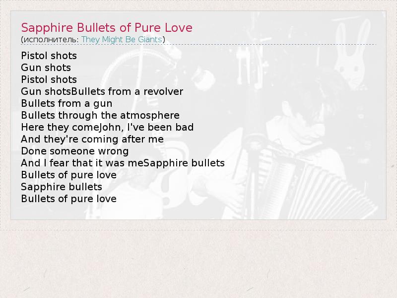 ГлавнаяИсполнителиThey Might Be GiantsSapphire Bullets of Pure Love