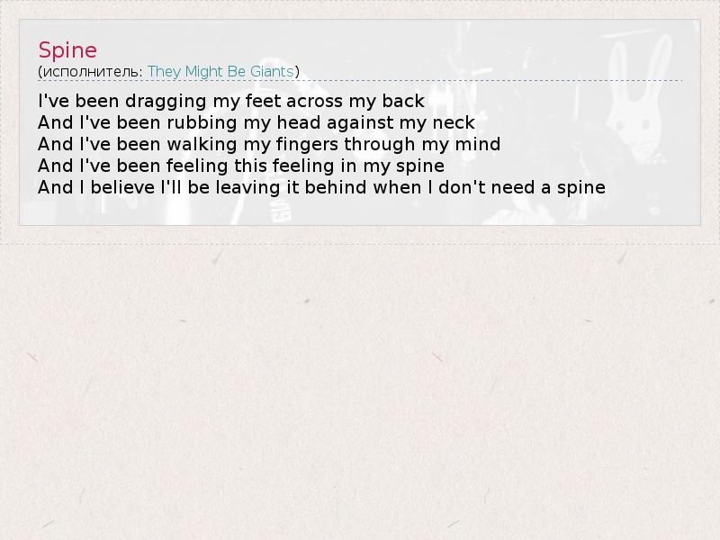 А как ты думаешь, о чем песня "Spine" ?