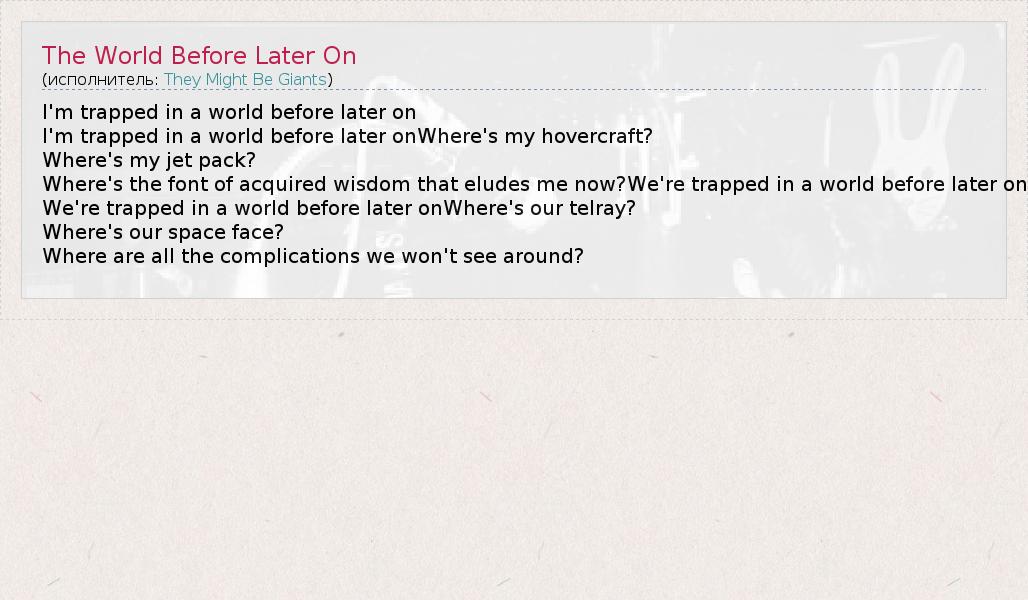 А как ты думаешь, о чем песня "The World Before Later On" ?