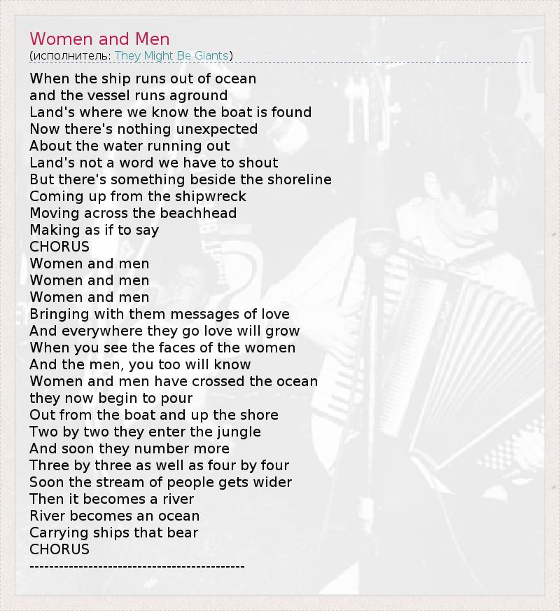 А как ты думаешь, о чем песня "Women and Men" ?