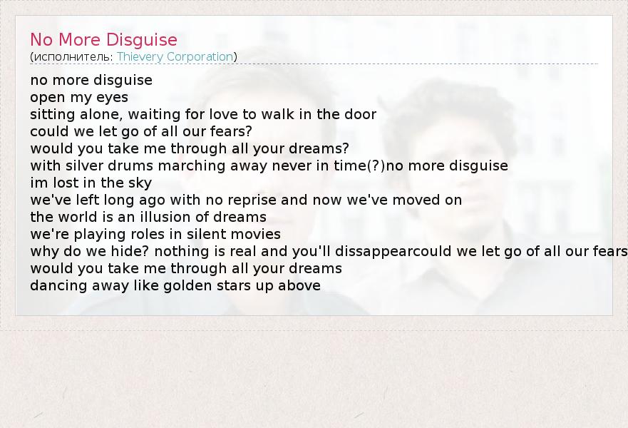 А как ты думаешь, о чем песня "No More Disguise" ?