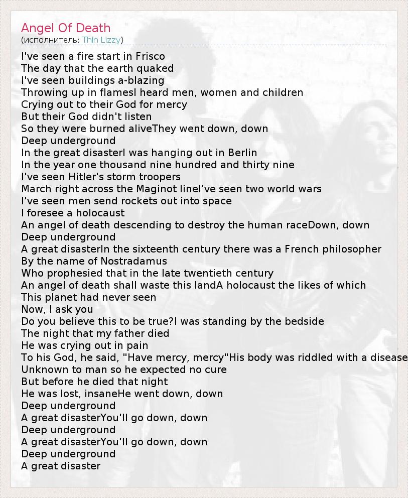 А как ты думаешь, о чем песня "Angel Of Death" ?