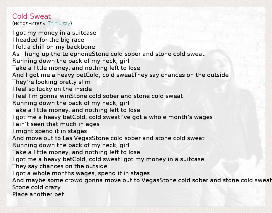 А как ты думаешь, о чем песня "Cold Sweat" ?